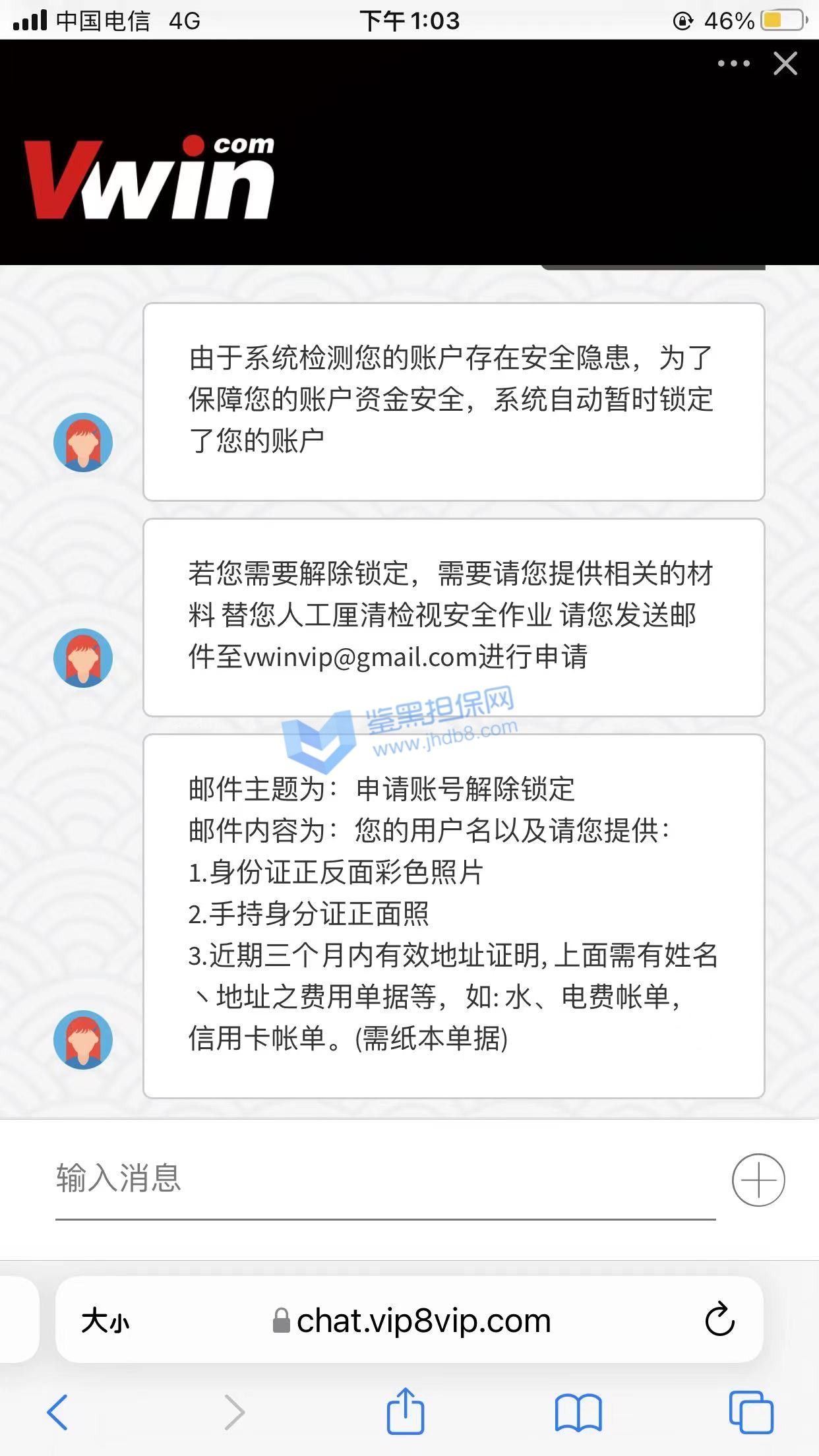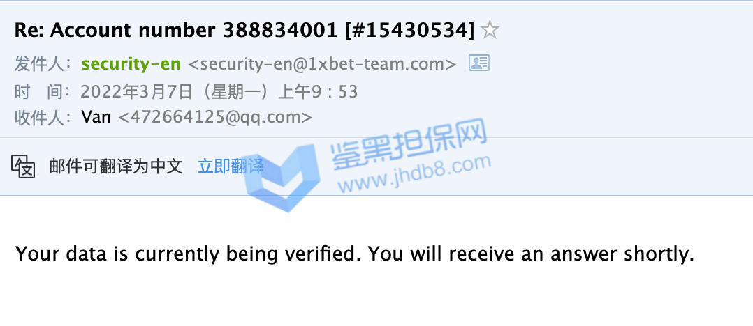 2022年3月1日我在1xbet充值了1万8的金额,想买各种比赛,到昨天3月7日,因为运气好,这个1万8的金额已经变成了6万元,我想取款,结果得到的消息是必须连续安全部分审核,我好奇为何注册的时候,存款的时候没有让我注册,但是也没多犹豫。随后就开始了一系列莫名其妙且扯皮的的过程。首先是一个说英文的客服回复我,让我提供银行流水证明,还必须是原件,带公章的,中国银行刚好可以开具这部分信息,我就提供了,然后让我提供身份证正反面,我也提供了,最奇葩的来了,让我把身份证放脸旁边拍一个自拍,带上他发我的那个邮件,这个有点过分了,但是我还是照着要求做了,随后他和我说资料审核结束,随后会有人联系我。我等了好久还是没有人联系我,我就主动发邮件询问,结果这次是个中文客服回复我,让我在不同的角度再拍一次身份证照片,我照做了,然后以文件大小不足1m为由让我重拍,我重拍之后,又换了个英文客服,说我提供的不是源文件,无法受理。我之后用不同角度/不同光线/甚至是扫描件发送我的身份证照片,都和我说不是他们要的文件,我随后发了我的护照照片,也是扫描件,一开始回复我要jpg照片文件,我发了以后,又回复我说不是他们要的文件了。这一系列过程下来让我觉得他们就是在刁难我,甚至是在骗取我的个人信息。希望鉴黑网可以帮我一下,帮我追款,谢谢。我的1xbet账号是388834001