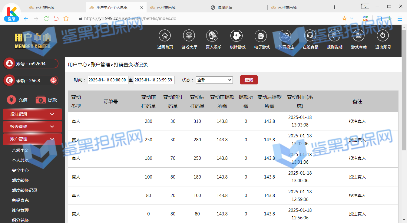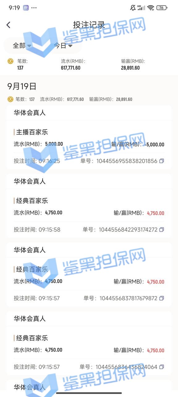 2025年1月23日下午我接到他们客服的电话邀请注册,说最高可以领288的彩金,我觉得这个平台不错挺大气的,就充了500元试试水。 因为他们平台我看是要求一倍流水提现,所以我就打到1300元申请了第一次提现,结果失败了,他们客服说让我打注册彩金288的5倍1440元才能提款,我就去他们指定的PG电子去打流水,当天晚上打够流水以后找他们提款再次失败,又改口说要打够提现余额的1300*5倍=6500元的流水才能提现。从第二次给我退回来以后他们给我后台修改了PG电子的赔率,损失从15%提高到50%,我一算账根本不够,然后我就又去打了百家乐,想着输完就不提,赢了就去刷流水,也是运气好,从1300元梭哈到5000多元,回来刷了一晚上的PG电子,一直到1月24日的中午,才刷够流水。1月23日刷了2000多流水亏了300多,差不多15%的亏损,第二天刷了4000多亏损超过2300元,我也没说什么,想着打够就提现吧。然后1月24日我去申请提现,客服先给我提了个88元,然后再提的时候以不足vip1为由让我继续充值700元到vip1,我又充了700,然后又去申请提现,提现后又给我拒绝了,说要我再充值1000元才能使用钱包收款,这回已经引起我的警觉了,我就和他们客服再三确认,这回充1000一定没问题了吧!他们客服拍着胸脯说百分之百一定能提现,给我保证,我就又充了一千。冲进去以后我申请提现又失败了,理由是资金风控让我再充值余额一半的钱也就是4000多元解除风控(我的资金是工资卡没有任何问题),他们客服就变成了复读机,一直让我继续充值,我说什么都没用,我说刚才不是百分之百能提现成功吗?他们也不理我,说这次百分之百能提成功。所以他们平台是输了钱算我倒霉,赢了钱就开始连环套路骗钱的骗子平台 以下是我经过技术手段查到的该平台的所有域名(我本人是计算机科班出身) 威尼斯人: wn88.vip vn600.top vn601.top vn602.top vn603.top vn604.top vn605.top vn606.top vn607.top vn608.top vn609.top vn610.top wn880.top wn881.top wn882.top wn883.top wn884.top wn885.top wn886.top wn887.top wn888.top wn889.top wn890.top wn891.top wn892.top wn893.top wn894.top wn895.top wn896.top wn897.top wn898.top wn899.top vn4456.com vn4457.com 81157.cc 元大娱乐城(同一个主体运营的另一家平台): yd7575.com yd9568.com yd3637.com yd3690.com yd5748.com yd9928.com yd3657.com yd2234.com yd1238.com yd1239.com yd1237.com yd2235.com yd1230.com yd1236.com yd1235.com