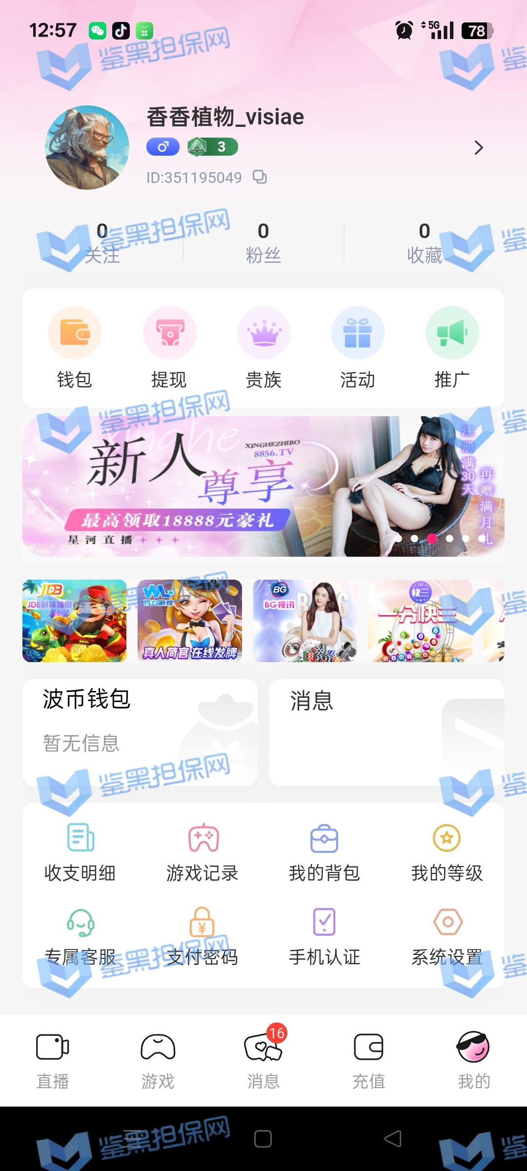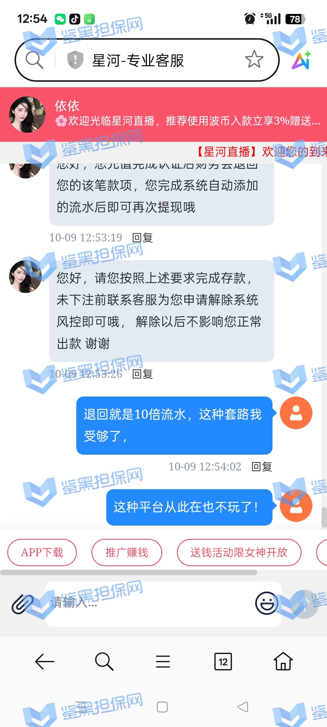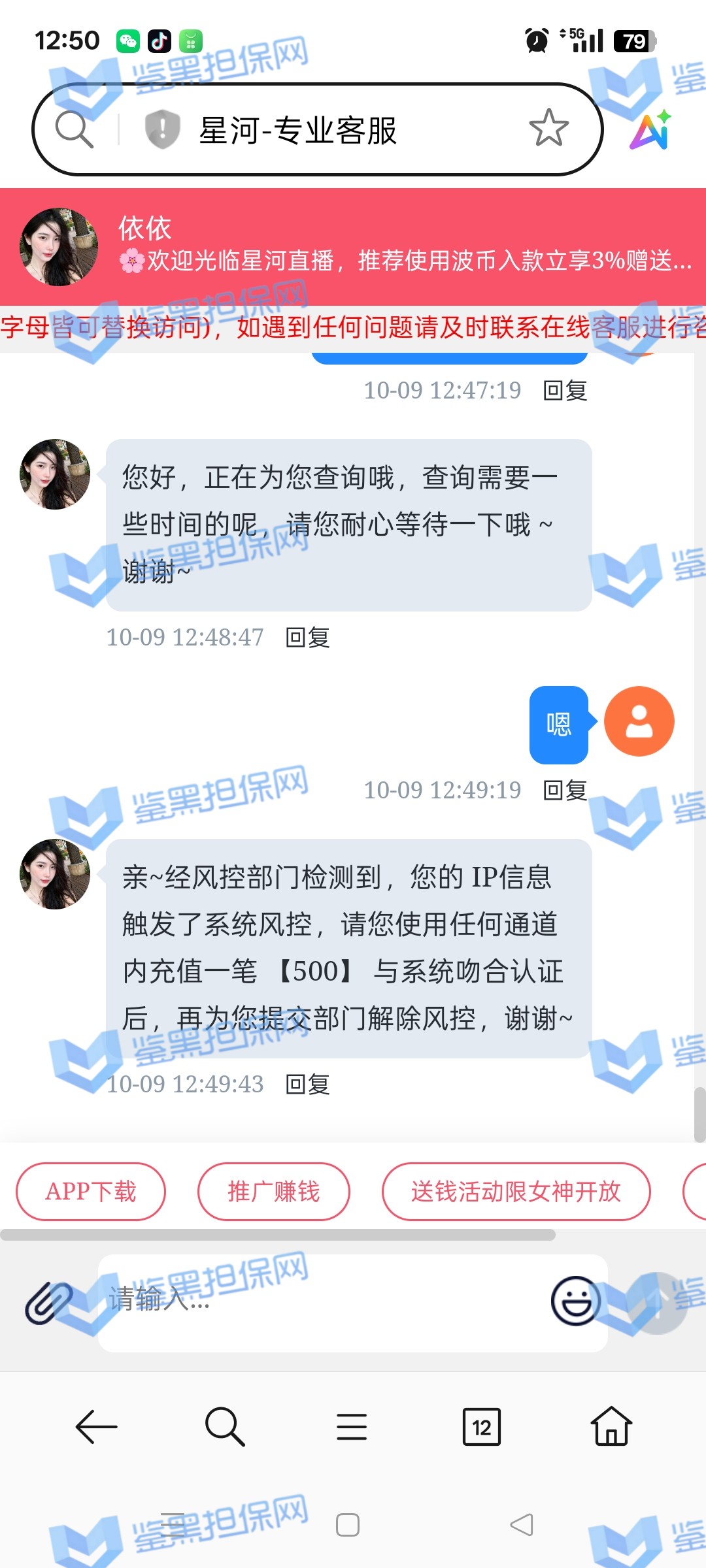 2、经核实风月直播是色播 博彩为一体的APP/网站,此种网站99.99%都是黑平台,此种未出款要求再存款的行为属于套娃,切勿继续存款且及时止损,该玩家已经进行二次投诉黄博平台,均是因为彩金噱头进去存款游戏的,还请广大玩家远离色播平台,勿贪念彩金!!!