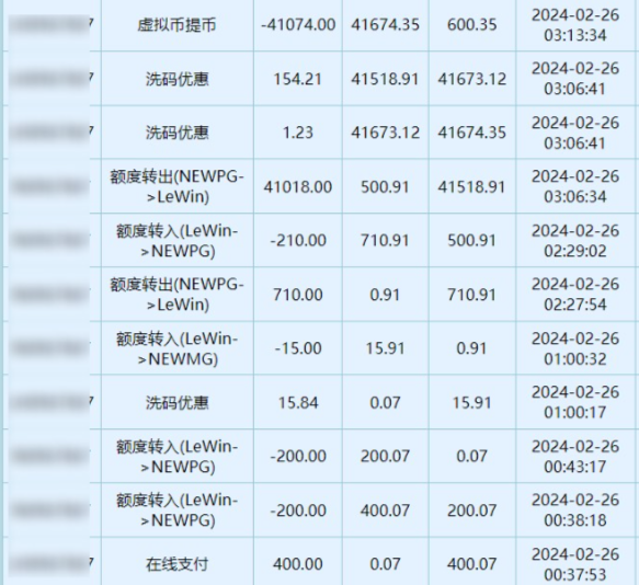郑老板当日充值两次第一次128元玩了PG老虎机,第二次充值308元转入PT老虎机。单日充值不多,436元。