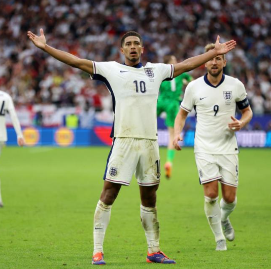 8.贝林厄姆进球的时间为94分34秒,这是英格兰在欧洲杯中最晚的进球。