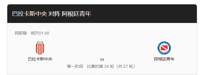 阿甲 01:00 巴拉卡斯中央队 VS 阿根廷青年人 巴拉卡斯中央队目前取得七胜九平七负的成绩,排名联赛14的位置,表现一般,当然主场方面的稳定性还算是比较高的,目前主场方面取得5胜4平3负的成绩,起码防守效率很高,场均失守不到一球。他们近期状态也是不错的,连续四场比赛不败打出,包括近期处于两连胜走势当中,都是打进两球的进攻表现,相当出色。阿根廷青年人则是取得九胜六平八负的成绩,领先着对手3个积分,球队的客场表现不算是太好,只有三胜三平六负的成绩,而且近期连续三场比赛不胜,包括最近两轮比赛都是被零封的局面,进攻比较乏力。就当前的数据来看,还是能够给予阿根廷青年人更大的支持,而数据走势也是对于阿根廷青年人利好,所以我认为阿根廷青年人不败很有机会。 分析双方数据: 巴拉卡斯中央队 【有利】 1、本赛季至今为止在联赛主场拿到了5场胜利,发挥明显优于客场; 2、状态:上场作客2-0击败了贝尔格拉诺,最近4场赛事取得了2胜2平的战绩; 3、数据走势:最近3场赛事全部赢下数据,赢数据能力明显提升; 4、数据历史:最近5次与本场相同初始数据的赛事最终拿到了4胜1负的佳绩,在此数据之下发挥出色; 5、火力点:本赛季至今已经有10名球员取得过联赛进球,进攻火力点分布比较广。 【不利】 1、前锋:本赛季至今为止在联赛中进球最多的球员只打进5球,进攻端明显欠缺1个强点。 阿根廷青年人 【有利】 1、防守:本赛季至今12次作客赛事之丢失9球,场均远不足1球; 2、往绩:双方近些年的一次交手中,阿根廷青年人客场3-1击败了巴拉卡斯中央队。 【不利】 1、状态:上场主场0-0战平了科尔多瓦,最近3场赛事只有1平2负的战绩; 2、数据走势:最近3场赛事全部都输掉了数据,赢数据能力不佳; 3、进攻:最近2场赛事全部遭遇到对手的零封,进攻效率有所下滑; 4、数据历史:最近4次