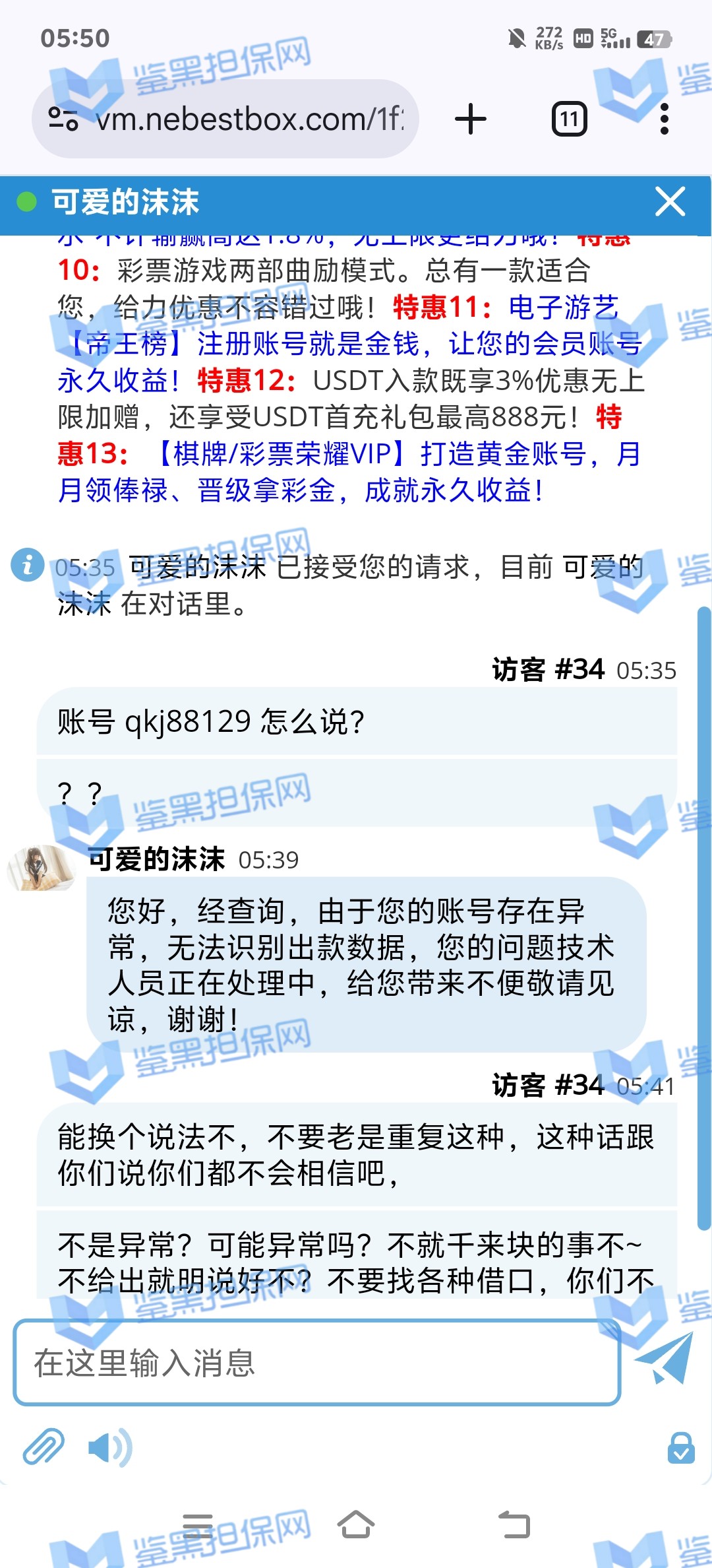 4.用户提交维权需为本人提交,若代替让人发布维权鉴黑担保网将拒绝受理;