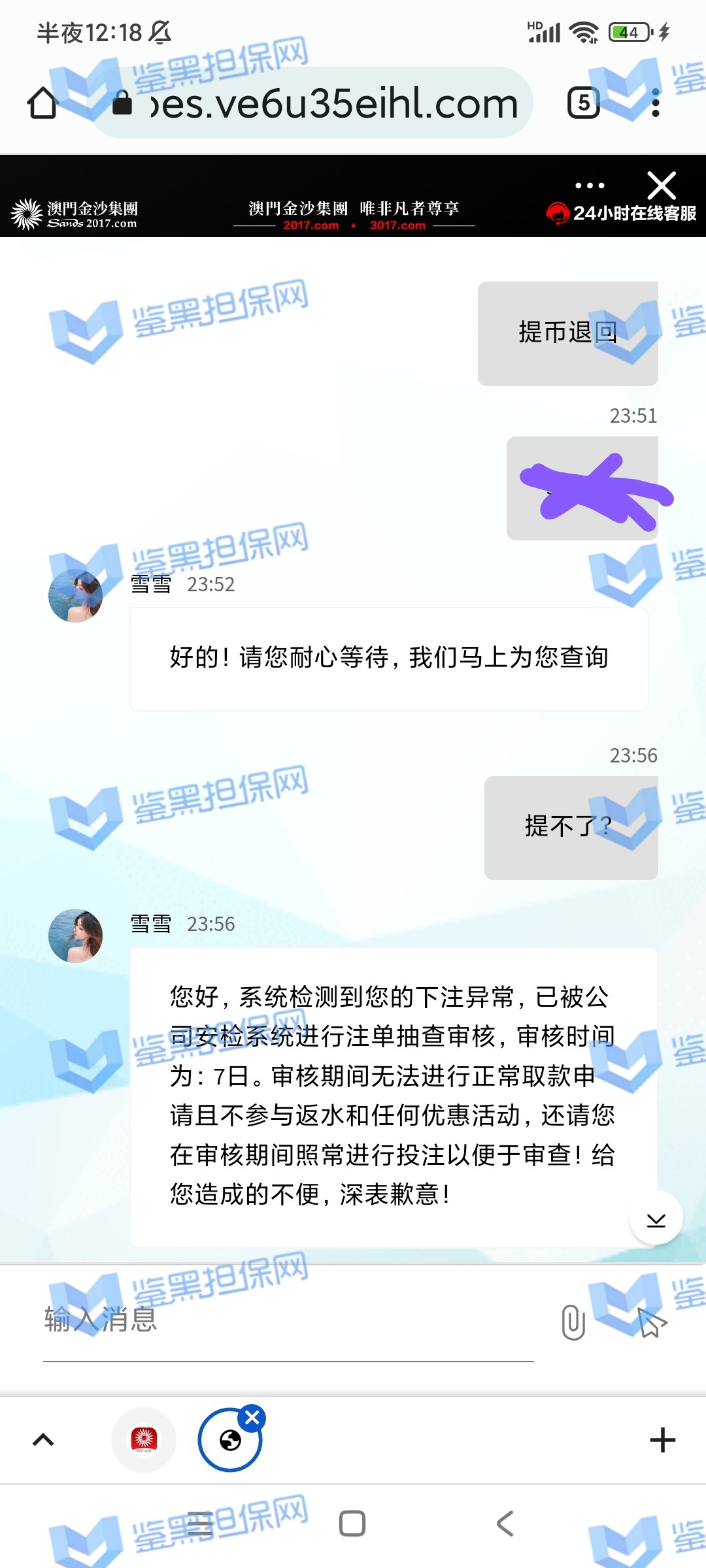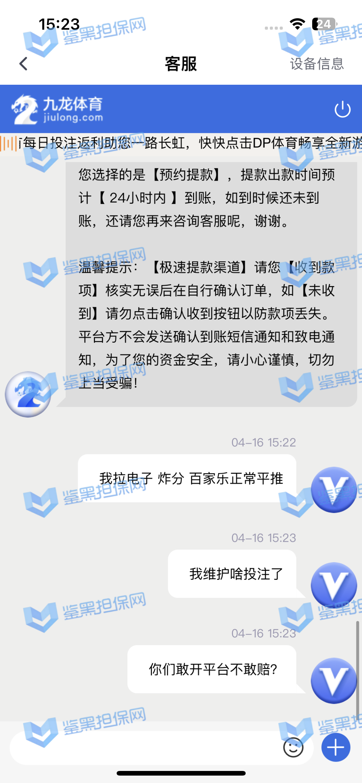 3.用户提交维权申请后资料不齐全,需在一周内补齐鉴黑担保网客服要求的资料,若超过一周时间没有完善维权信息,维权将因资料不全拒绝受理;