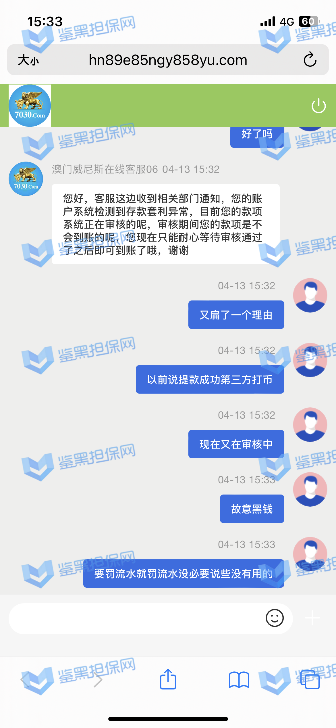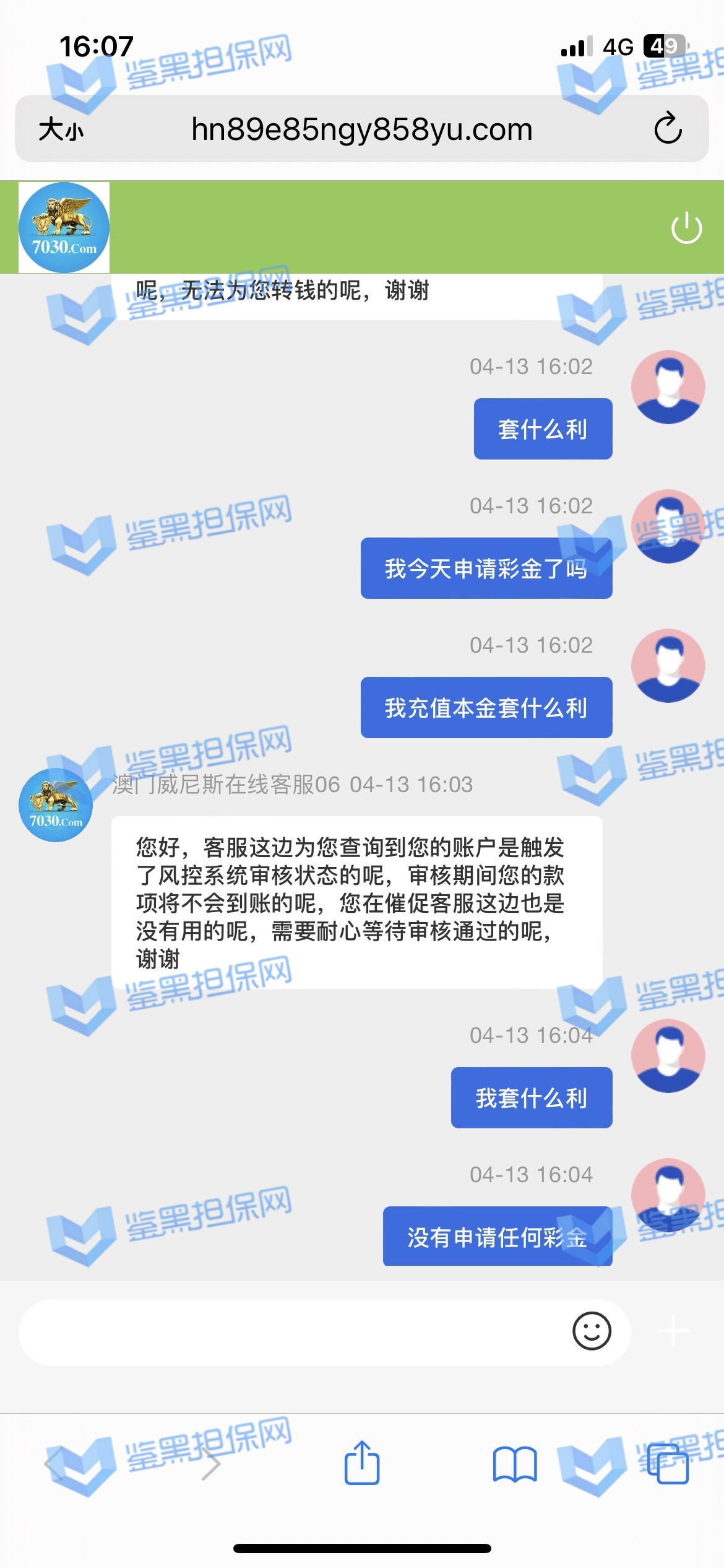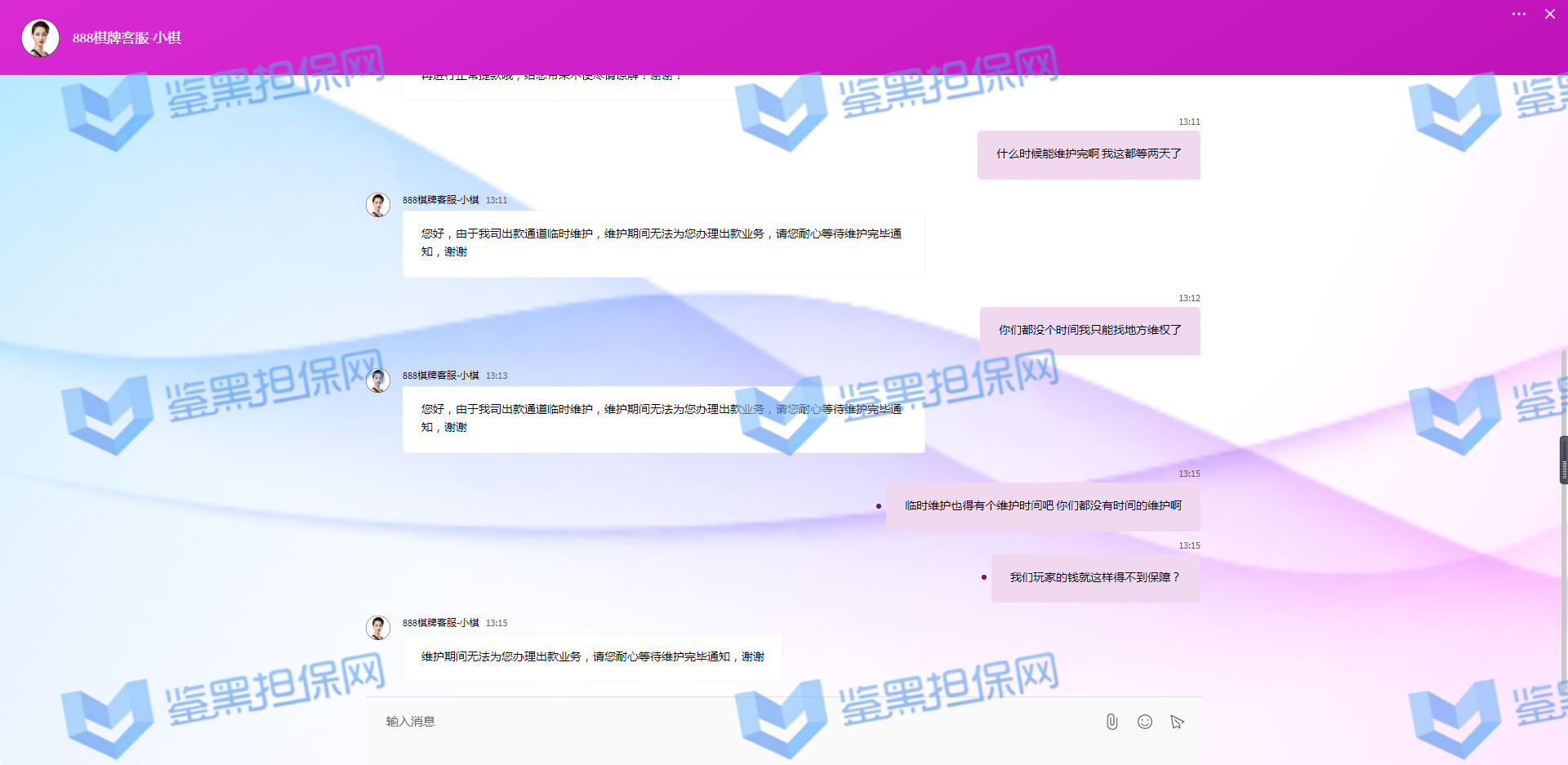 4.用户提交维权需为本人提交,若代替让人发布维权鉴黑担保网将拒绝受理;