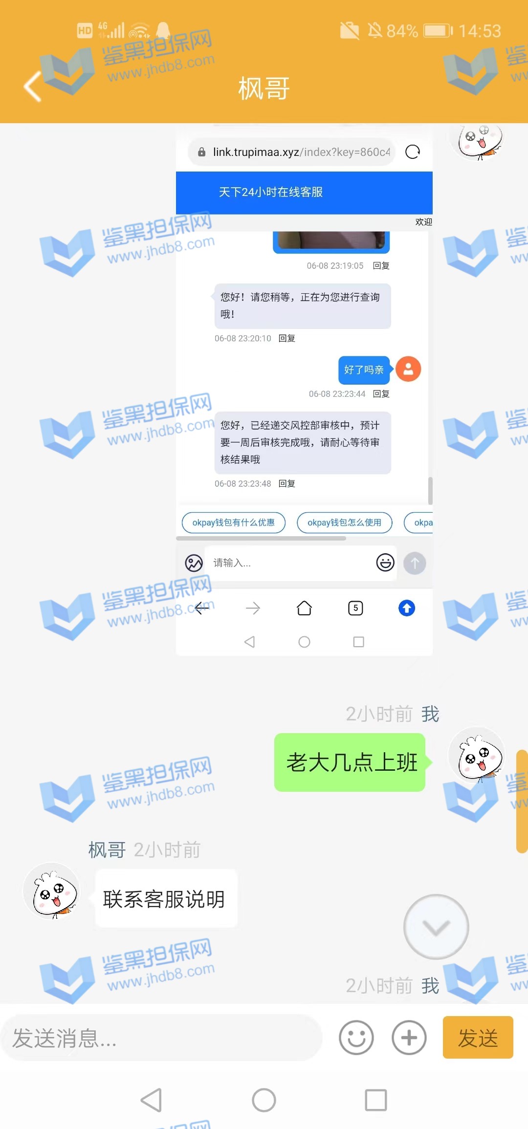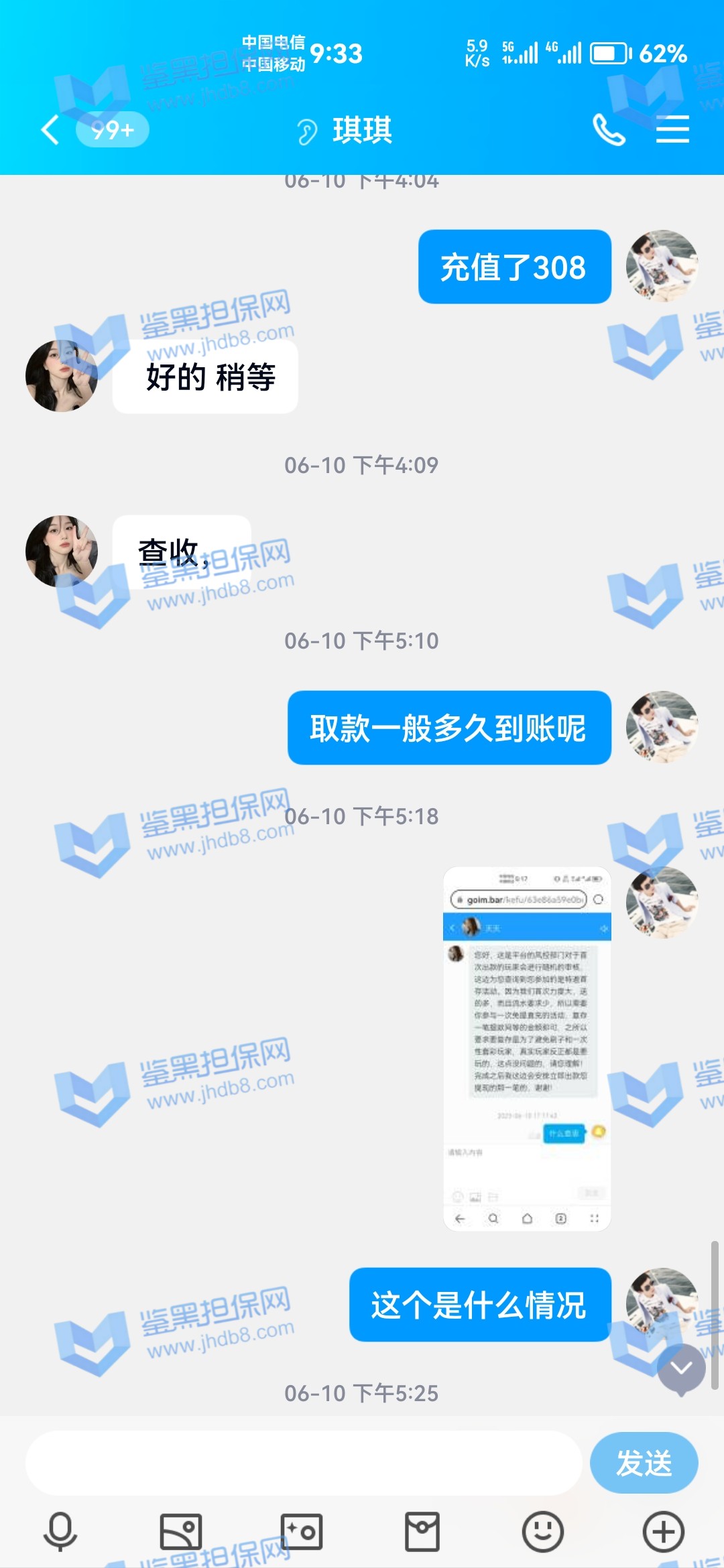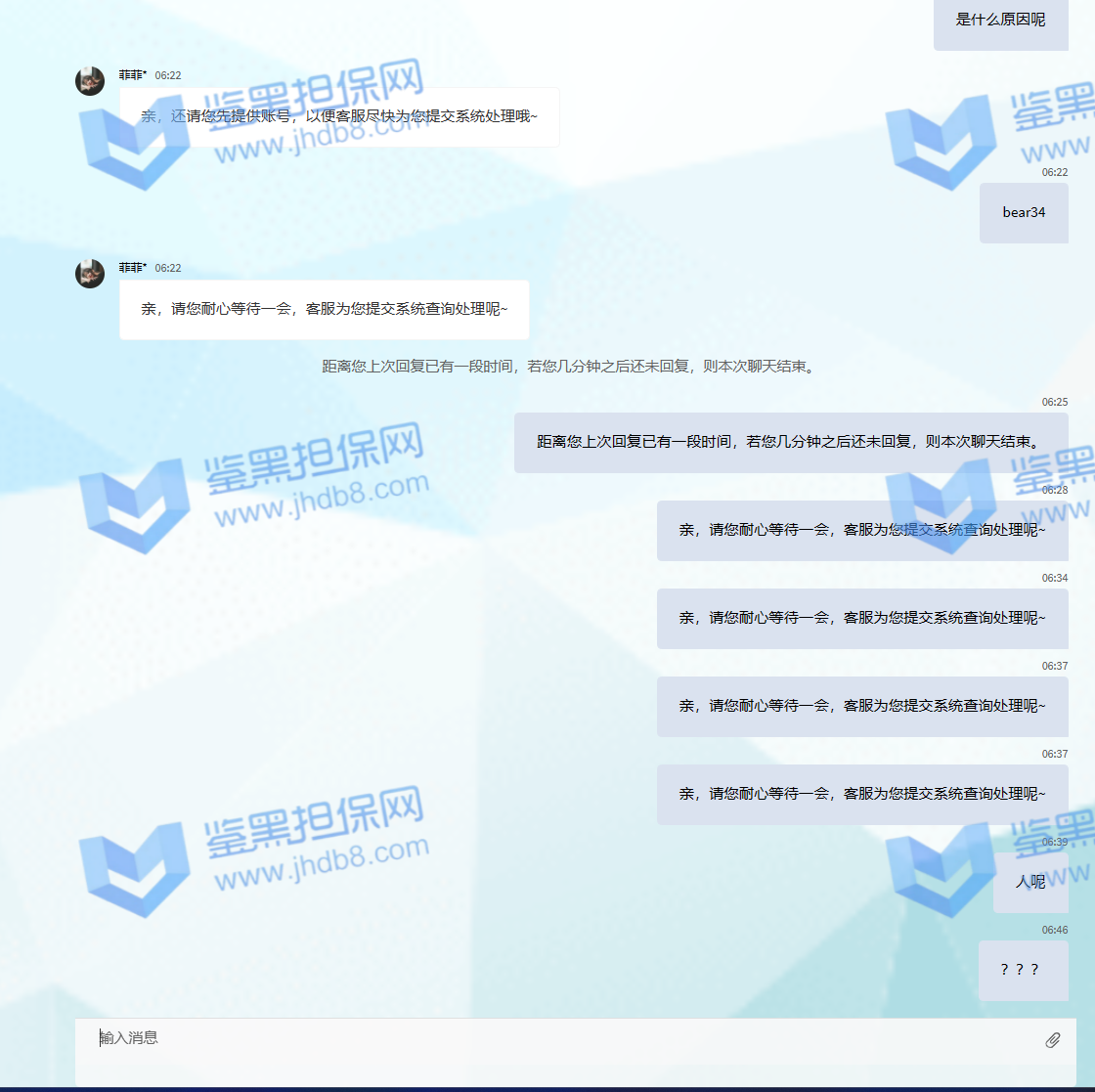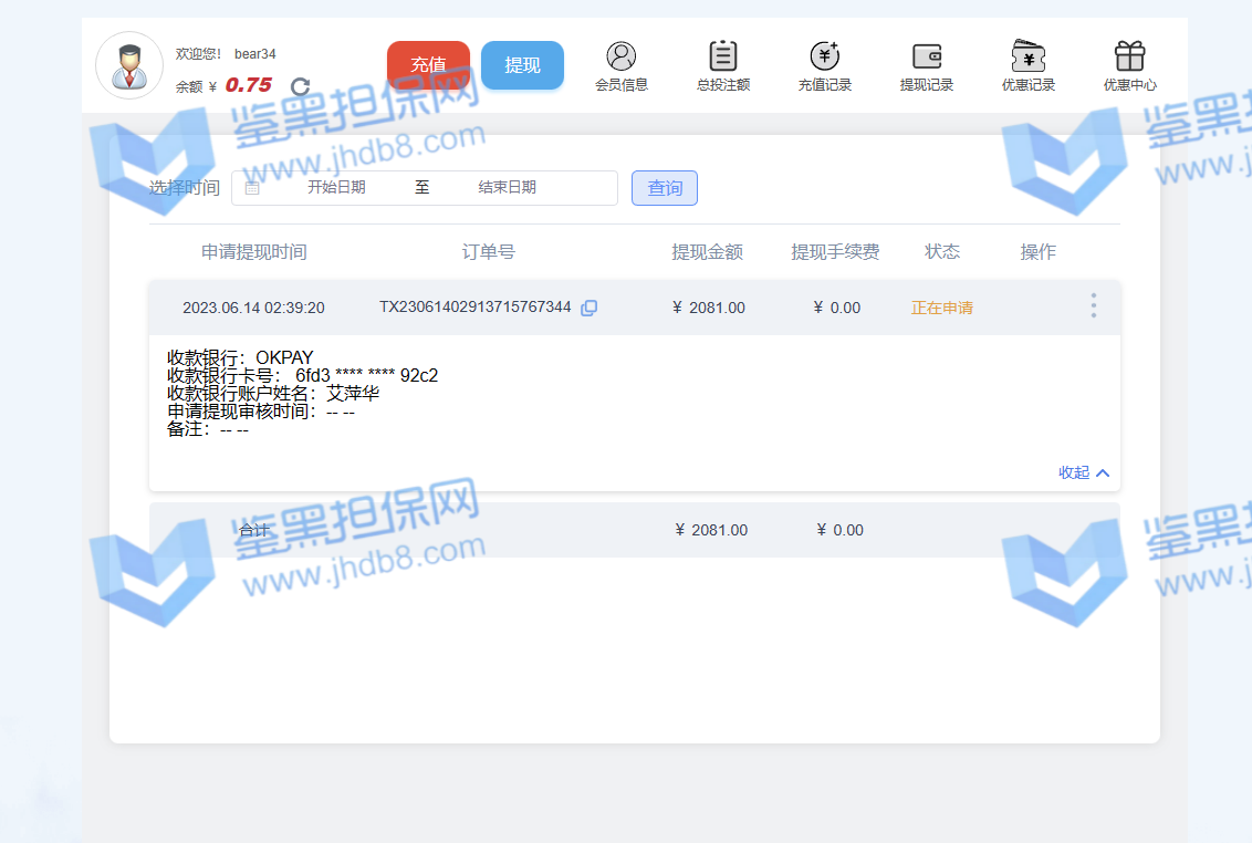 4.用户提交维权需为本人提交,若代替让人发布维权鉴黑担保网将拒绝受理;