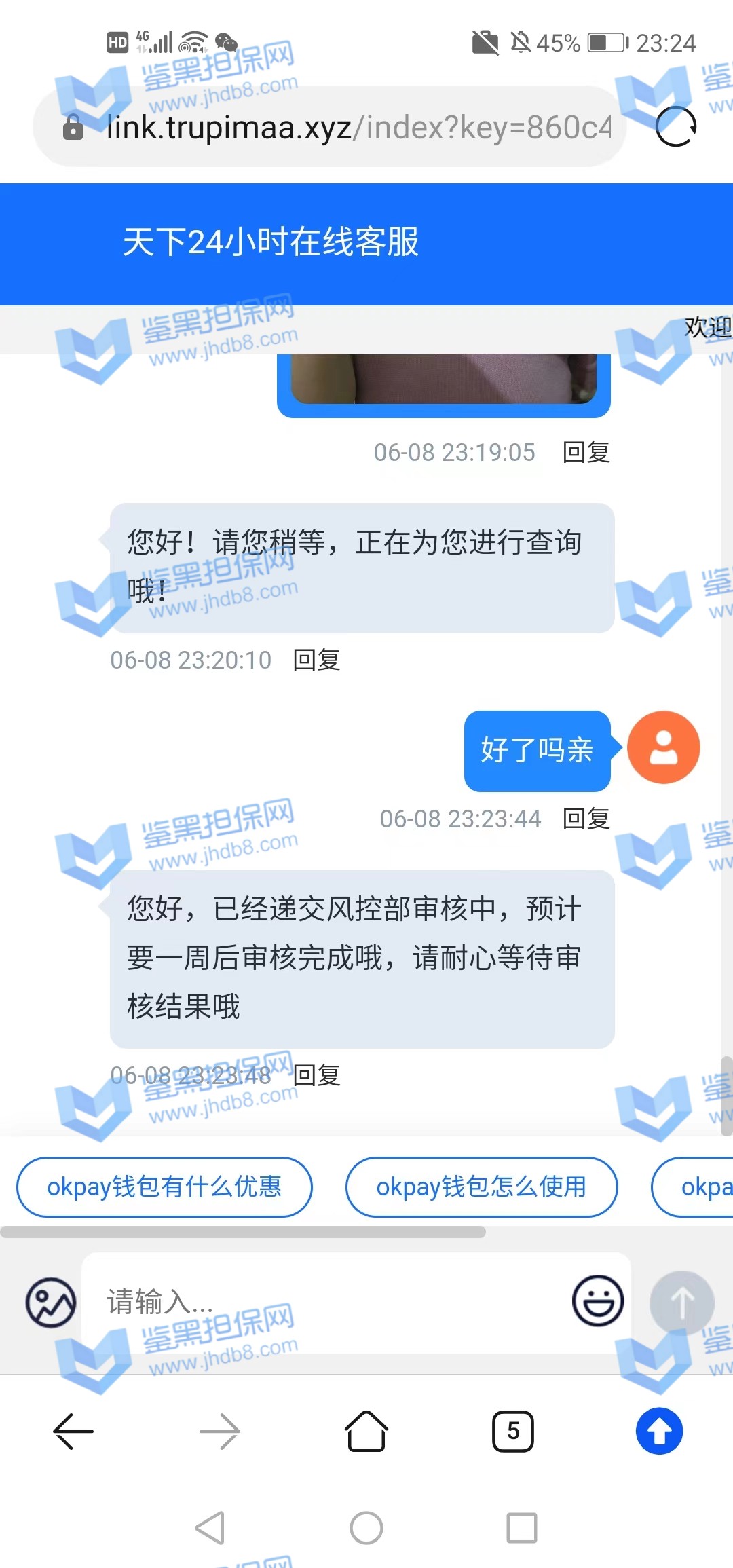 3.用户提交维权申请后资料不齐全,需在一周内补齐鉴黑担保网客服要求的资料,若超过一周时间没有完善维权信息,维权将因资料不全拒绝受理;