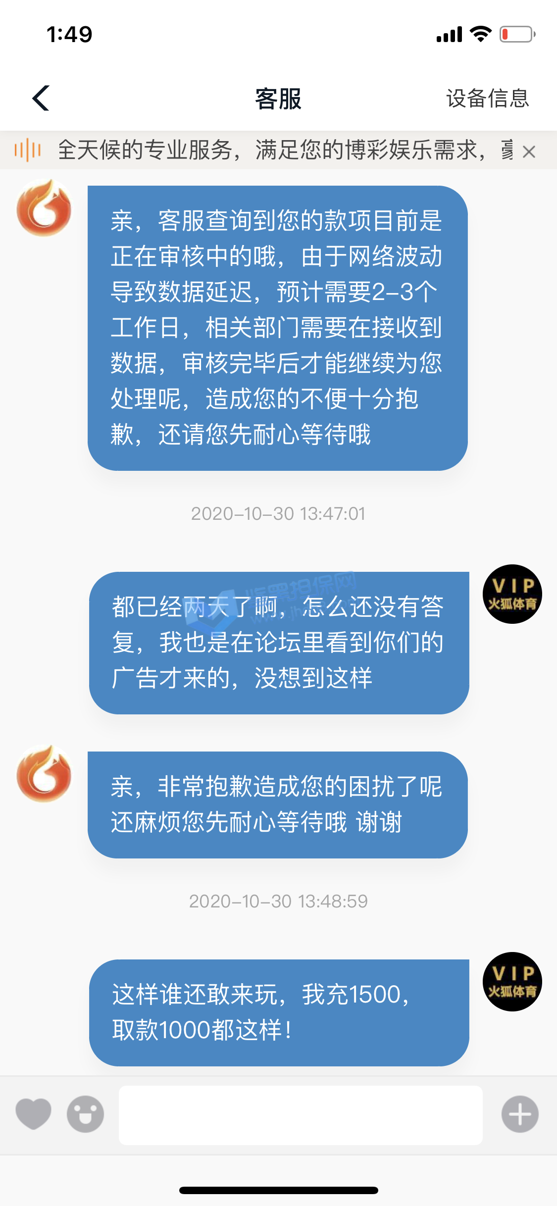 3.用户提交维权申请后资料不齐全,需在一周内补齐鉴黑担保网客服要求的资料,若超过一周时间没有完善维权信息,维权将因资料不全拒绝受理;