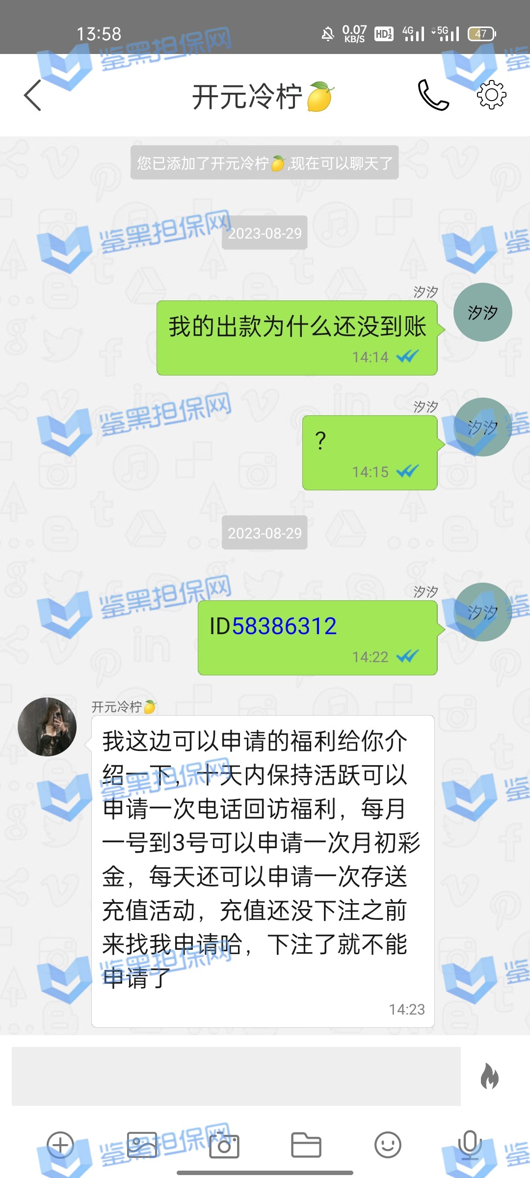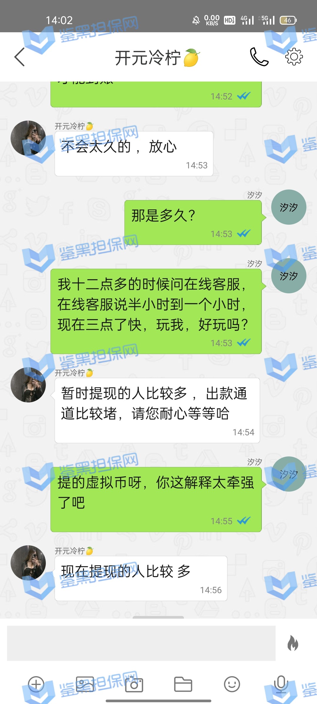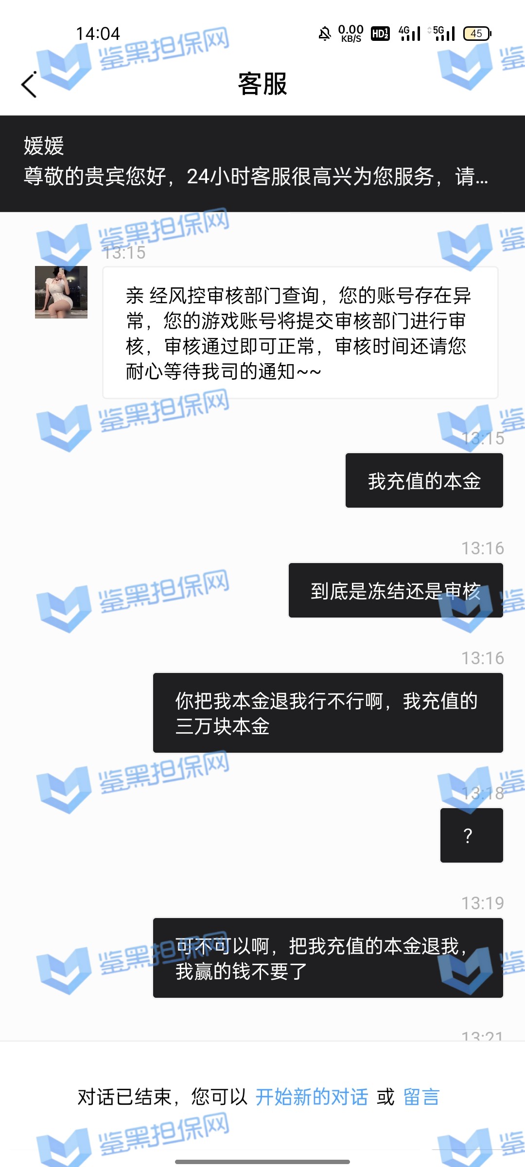 我八月29号凌晨的时候,在开元棋牌注册了一个账号,第一次来这个平台玩,就注册了一个账号,也没申请优惠,第一笔充了一万,打ag魔龙,赢了两千,提的gopay提现到账了,第二笔我充了三万进去,还是打ag魔龙,赢了五千,一共三万五,我提现,凌晨五点的时候提现的gopay,一直没到账,问客服,客服让我中午十二点再去找他,我中午十二点去找了,他一直在说催财务,在审核,一直不给我打钱,下午两点多的时候,他让下载Mchatapp https://www.mchat.com/#/home,添加专员【lengning91】问提款问题,我加了专员第一句话就是问他我的提款怎么还没到账,专员没理我,然后自顾自的帮我申请了一个什么回访福利,有228彩金,我不要的,他自己帮我申请的,一直在账号那里没动过,等我又说了一遍他才说查一下,查了然后一直让我等,说什么人多提现通道堵,让我等,还跟我保证说钱不会丢,等到下午三点多,我发现账号登录不上去了,我去问专员,专员就不回我信息了,一直不回信息,直到今天才回了一下信息,说不会随意冻结会员账号,然后就又不理我了,我找在线客服问,一直都说说什么风控异常套利审核,我什么彩金都没有申请,就赢了几千块而已,然后我让他把我本金退我,他就不理我,不回我信息了