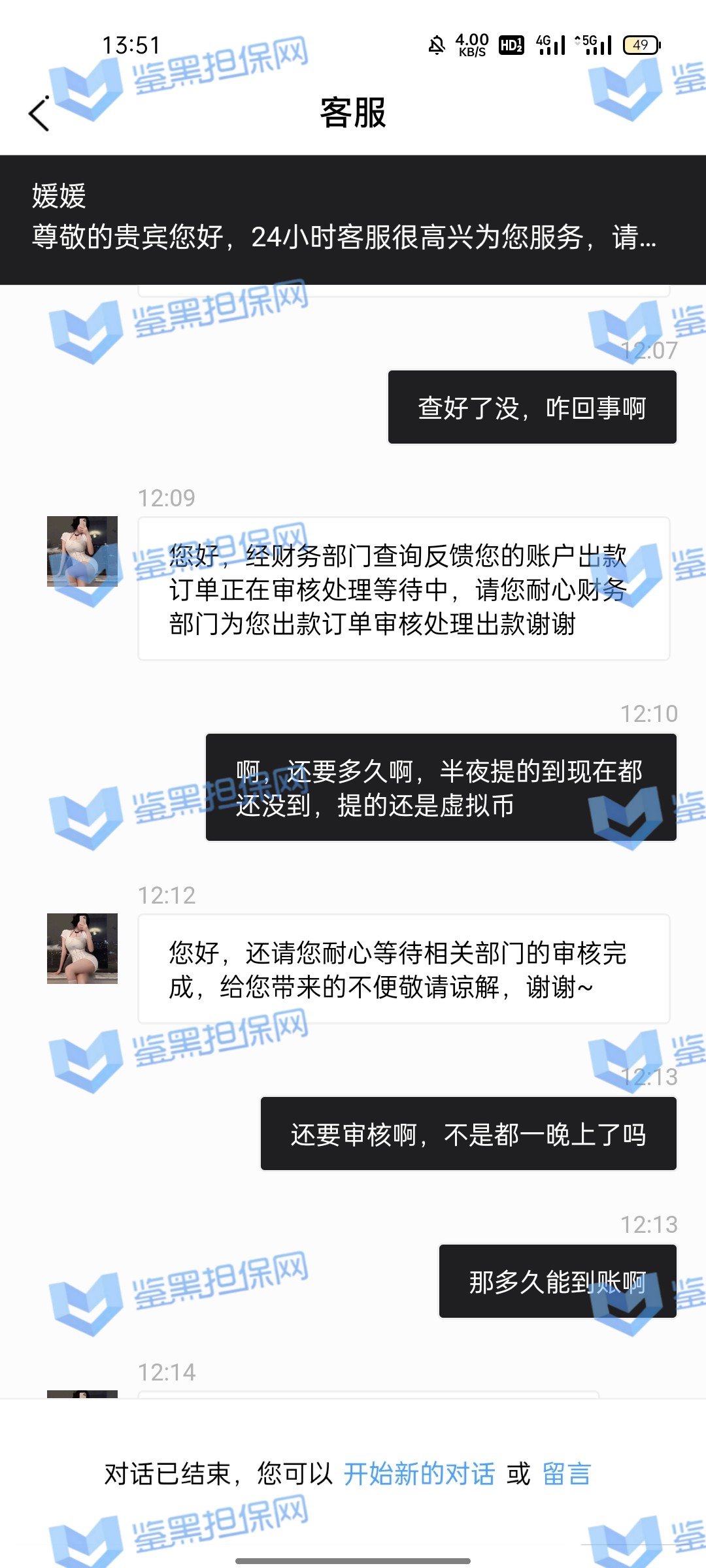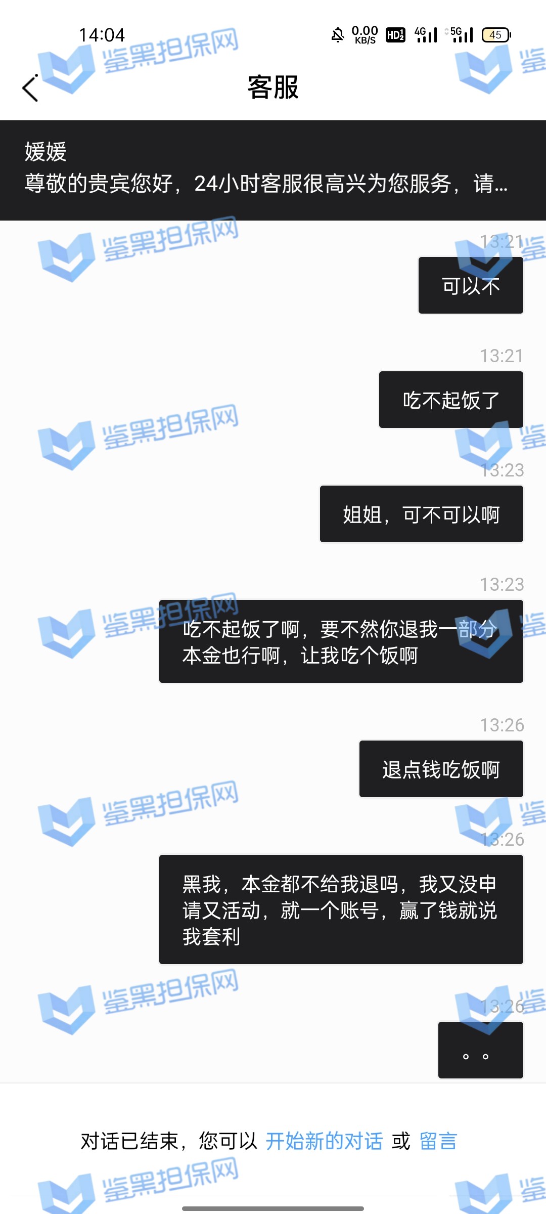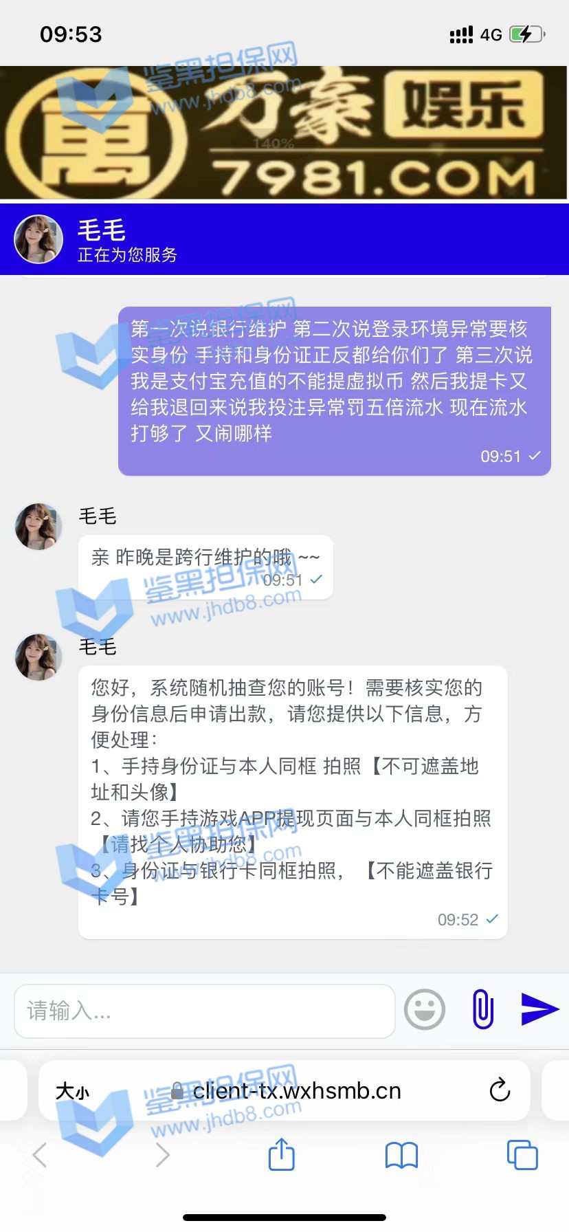 投诉原因: 我在4.16号凌晨在此平台通过支付宝充值了700元进行娱乐,没有申请任何活动纯裸打,打了电子和百家乐,运气还不错电子爆了分然后百家乐打了几把打到了1w就申请了第一次提现,提的是虚拟币,过了一会,提现被退回,第一次被退回原因是说现在跨行维护等维护好了我在申请提现。过了一会我申请了第二次提现,这次又被退回,客服说我是支付宝充值的所以不能提现到虚拟币账户,必须要提到银行卡,然后我申请了第三次提现,选择提现到银行卡。然后又被退回,第三次退回理由是说我登陆地点异常要手持身份证和身份证正反发给他来核实身份,我照做了,然后发起了第四次提现。然后又被退回,这次说我投注异常要罚我提现金额五倍流水然后才能再次申请提款,我在游戏期间无任何违规行为(比如对压之类的),但是我也照做了,退回之后我又打百家乐打够了要求的流水打流水过程中又赢了不少,然后申请了第五次提现。提现申请了之后,半天没人审核,然后客服又说我被系统随机抽中所以出款要核实身份,然后我就又配合客服发了一些照片,然后再次申请了提现。又过了一会账号就被冻结了,联系客服,这次说我的账号存在违规投注。麻烦贵网客服帮忙联络处理一下,维护权益,感谢