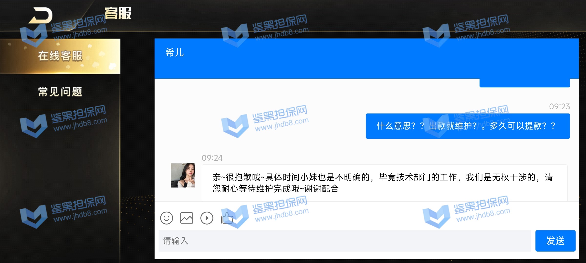 4.用户提交维权需为本人提交,若代替让人发布维权鉴黑担保网将拒绝受理;